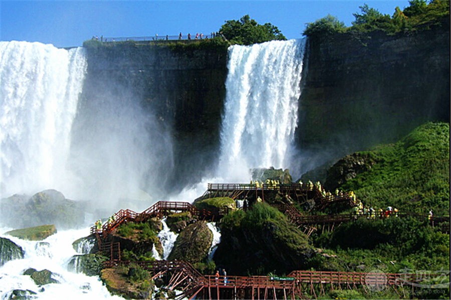 【尼亚加拉瀑布】:位于加拿大安大略省和美国纽约州的交界处,是世界第一跨国大瀑布。得天独厚的地理位置,造就了它雄伟壮观的奇景。丰沛而浩瀚的水汽,绝对震撼您的眼球,水声震耳欲聋,水汽浩翰高耸。著名的美国瀑布、马蹄瀑布、新娘面纱瀑布各具魅力,无论是乘船穿梭其中感受水雾笼罩,还是坐直升机俯瞰瀑布汹涌,都将是您终生难忘的体验。